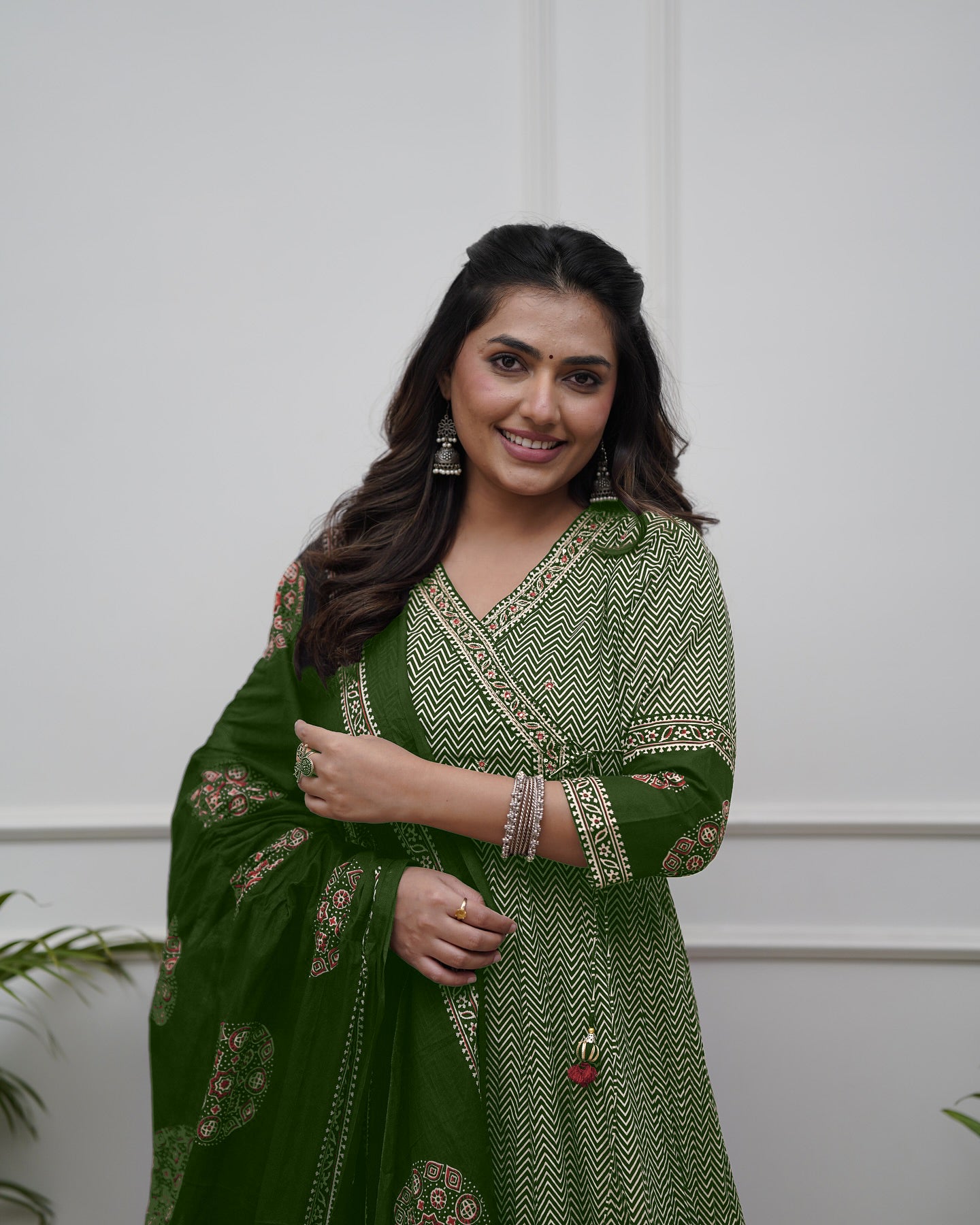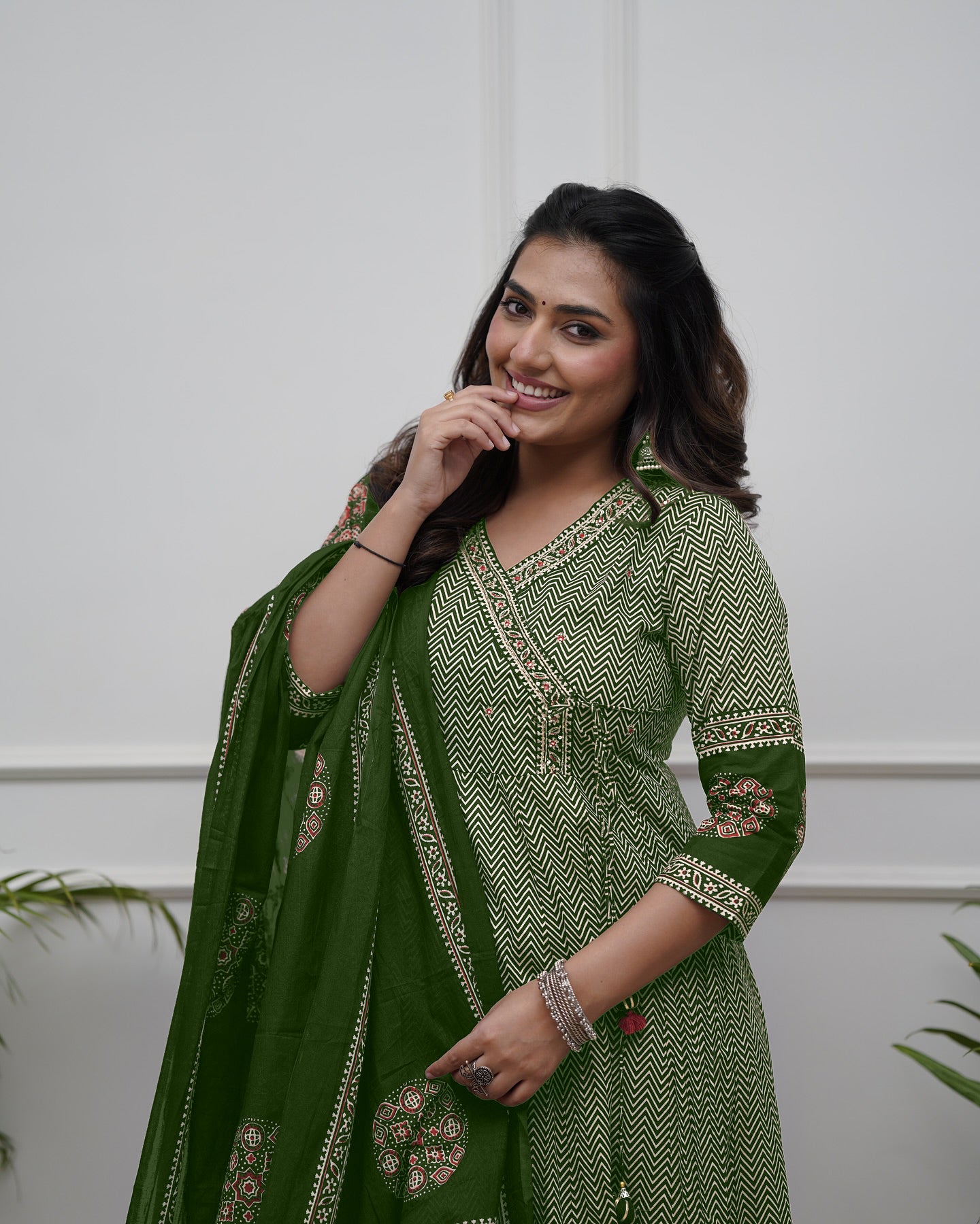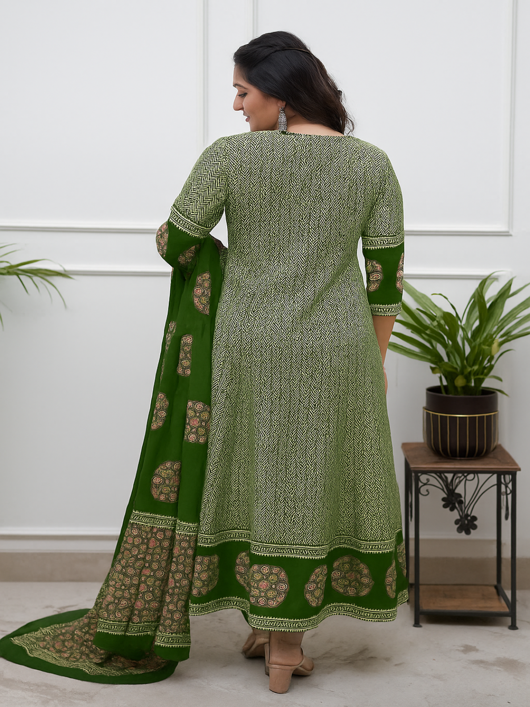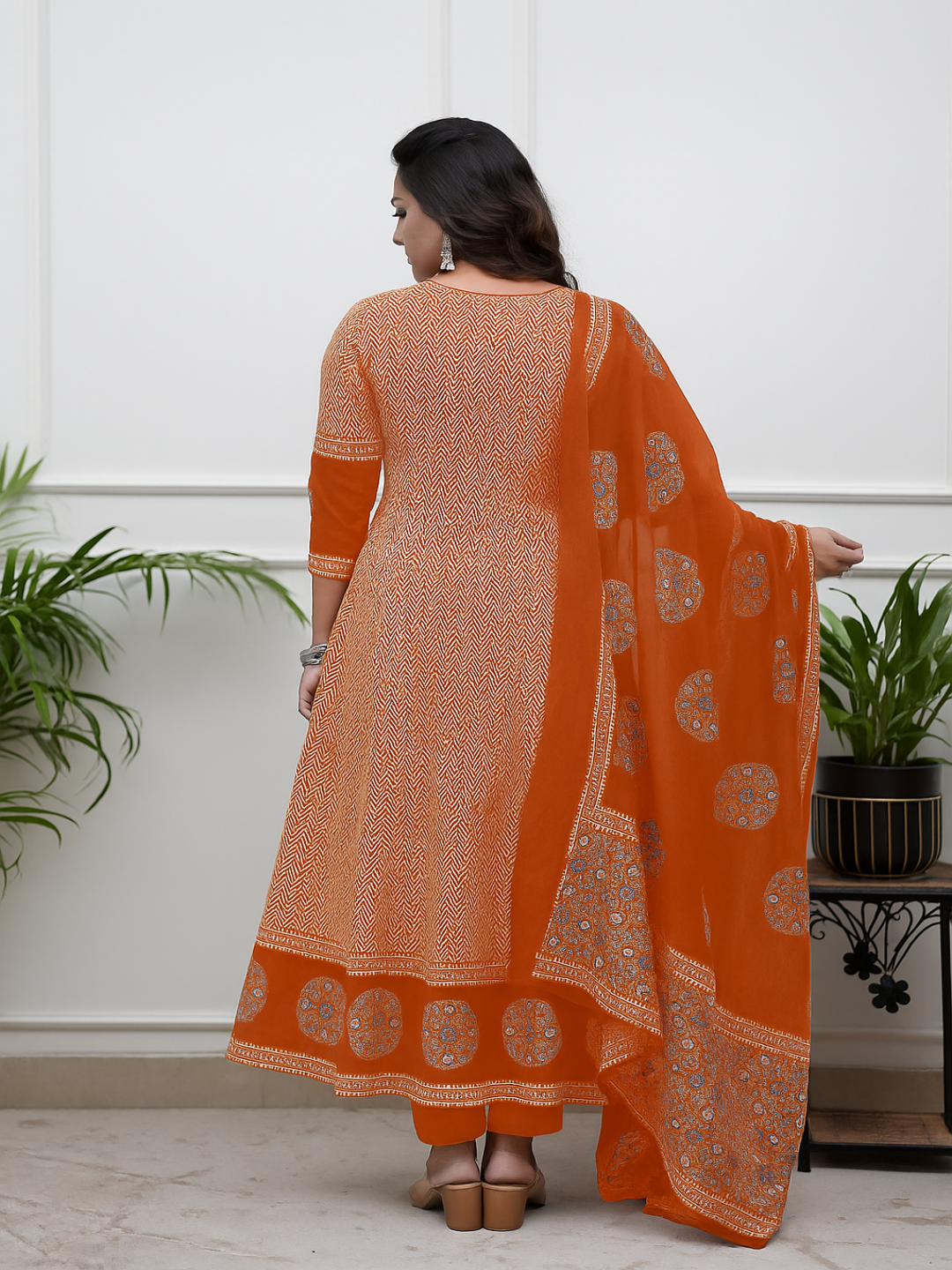 Description – A classic black and beige printed Anarkali-style kurta with subtle ethnic motifs. Paired with a matching black printed dupatta, this outfit blends elegance with comfort.