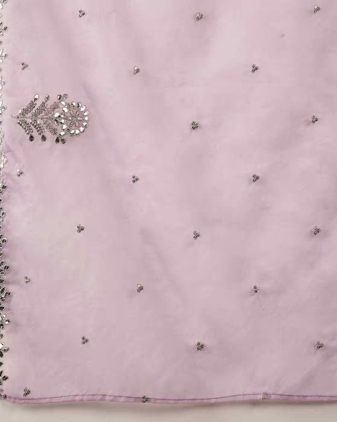Dupatta Details – Lavender organza blend dupatta with sequin and mirror work border.